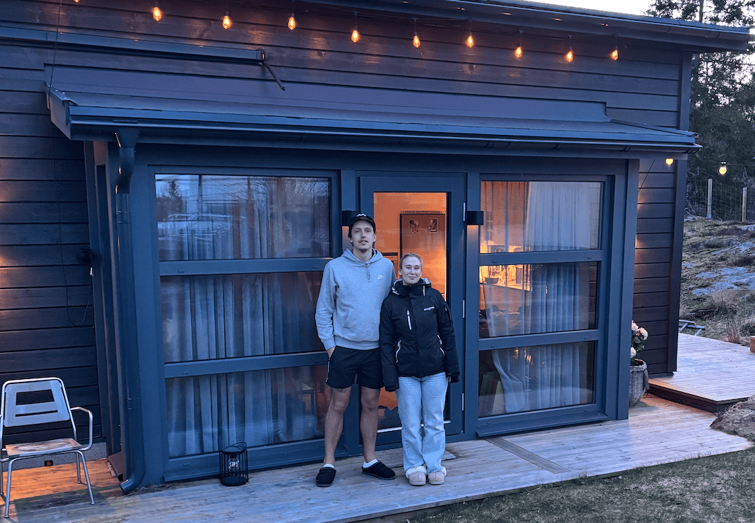 “Eddie och Linnea har bott ihop i mer än tre år i MAX Attefall och stortrivs. Det är som en minivilla för två. De har närhet till det stora huset och övriga familjen, men kan leva ett egen liv i huset med matlagning, häng med vänner och allt annat som ungdomar vill göra, utan att störa oss som är lite äldre.”